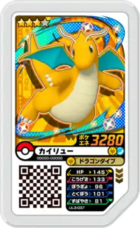 Dragonite (Japanese: カイリュー Kairyu) is a Grade 3 Pokémon Ga-Olé disk. It is part of the third Ultra Legend set.
