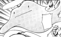 Knowing a variety of attacks including Hyper Beam, Ice Beam, and Dragon Rage along with seven more, Dragonite was Drake's powerhouse and Drake's sixth and final Pokémon to be used in battle. Dragonite was used to battle four of Ash's Pokémon. It defeated Charizard, Squirtle, Tauros, and even broke away from battle to send Team Rocket blasting off, before finally being defeated by a close-range Thunder from Ash's Pikachu. | ||