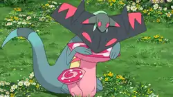 Drakloak debuted in JN092. When the Dreepy on its head fell off, it used Goh's Grookey as a substitute. When Grookey started hitting with its stick, Drakloak became angry until Dreepy was returned to it.
