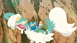 Drampa debuted in Tasting the Bitter with the Sweet!. This one was nicknamed Grandpa Forest. In the past, it saved a young Lana and Mallow when they fell off a cliff. It reunited with them in the present day, when it also helped Harper and Sarah, and it has since made further appearances in Pokémon the Series: Sun & Moon.