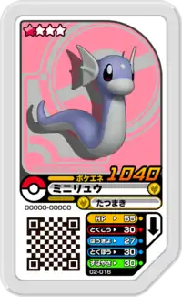 Dratini (Japanese: ミニリュウ Miniryu) is a Grade 1 Pokémon Ga-Olé disk. It is part of the second set.