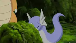 In A Test in Paradise!, Goh and Ash witnessed a Dratini on Dragonite Island shedding its own skin before it started swimming in some water.