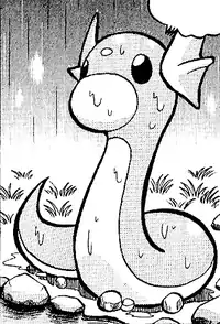 In PZ06, Satoshi found a Dratini while fishing in the Safari Zone. Soon afterwards, he traded it to a Fisherman in exchange for several Water-type Pokémon and the Safari Zone Warden's missing dentures.