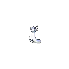 Dratini's life energy is constantly building so it is always growing, and can reach lengths of over six feet. As it grows, it sheds its skin regularly and hides behind a rapid waterfall during the process. The shed skin of Draitni can be used to create super luxury boots. Dratini lives a quiet life underwater, eating any food that sinks down to the bottom. Although this Pokémon was originally thought to be nothing more than a myth, a small colony has been found living underwater. It was first discovered by a fisherman who spent 10 hours attempting to capture it. It has been referred as the "Mirage Pokémon". In the past, Outrage was its signature move.