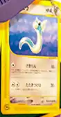 This card is part of the Sample Set, a small collection of cards created in order to promote the e-Reader prior to its release in Japan on December 1, 2001. This card is part of the second produced collection, consisting of 10 cards utilized during the Nintendo Space World event held on August 24-26, 2001 at the Makuhari Messe convention center in Chiba. It is not known if any of the ten cards in this collection have made their way to the public. Because the display cases at the event presented their information in both English and Japanese, one of the 10 cards, Dratini, was given an English print in order to display in the e-Reader case.