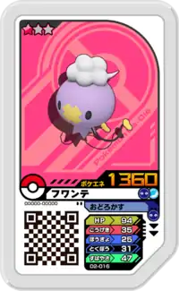 Drifloon (Japanese: フワライド Fuwante) is a Grade 1 Pokémon Ga-Olé disk. It is part of the second Dash set.