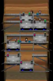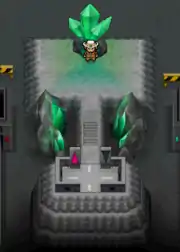 The Gym no longer features the elevator puzzle, but is instead replaced by a conveyor belt puzzle that takes the player to landing platforms. Each time the player lands on a new platform, it lights up. Occasionally there will be viewing platforms, which allows the player to see several platforms from above. Whilst most of the conveyor belts take the player directly to the next platform in any one direction, there are some that jump a platform by traversing underneath it, leading to the one beyond it instead. This time, there are seven trainers available to battle in the Gym. However, only two of them need to be battled in order to reach Clay. As the player lights up more of the platforms, the ground becomes more visible, stalagmites of crystal can be seen jutting out of the ground, as well as air vents that connect all the way through the Gym, one of which can be seen next to Clay's golden platform. Various drilling machines, wheelbarrows and shovels also litter the floor throughout the Driftveil Gym.