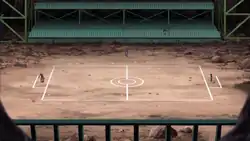 After gathering the requested Revival Herbs, Ash returned to the Gym in Battling the King of the Mines!, where Clay at last accepted his challenge. Like in the games, the battlefield is located at the bottom of the mine shaft, requiring an elevator for access. During the final round between Ash's Roggenrola and Clay's Excadrill, Roggenrola evolved into a Boldore, allowing Ash to win the match and earn himself the Quake Badge.