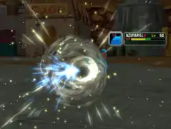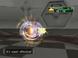 | Piplup's beak glows white and it spins like a drill as it jumps at the opponent, hitting it with its beak; or, Piplup's beak glows yellow and spins like a drill. It then repeatedly pecks the opponent with it. | |||