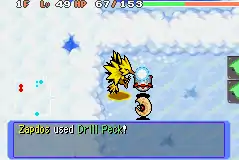 Zapdos rams into the opponent with its beak and rotates its body in a circle, pecking the opponent. | ||