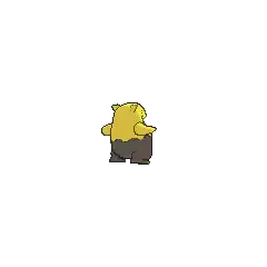 Drowzee is a bipedal Pokémon that resembles a tapir. It has tired-looking eyes, a short trunk above its mouth, and triangular ears with brown interiors. The upper half of Drowzee's body is yellow and the lower half is brown. A wavy line separates the two halves. It has a round belly and short legs. Its feet are brown, except for its two toes, which are yellow. The bottom of each foot has a small, round, pink pad in the middle of it. There are three fingers on each of its hands. Drowzee is believed to have a common ancestor with Munna and Musharna.