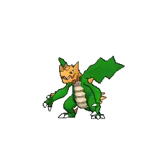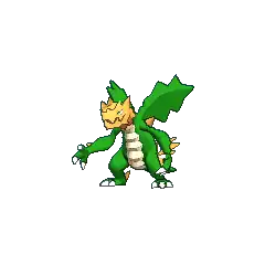 Druddigon is known to be vicious and cunning. It warms its body by taking in sunlight with its wings; if its body temperature lowers, it becomes immobile. It has savage physical strength; it nimbly chases prey around its den, using its outstretched claws to catch them, or charging into them face-first. It infiltrates the tunnels of other Pokémon, such as Diglett and Dugtrio, and waits for its prey to pass by. Druddigon lives in caves, stolen nests from other Pokémon, and is carnivorous.