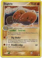 Dugtrio (Japanese: ダグトリオ Dugtrio) is a Fighting-type Stage 1 Pokémon card. It is part of the EX Crystal Guardians expansion.