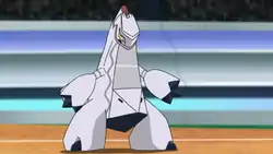 Duraludon debuted in Toughing It Out!, under the ownership of Raihan. It is capable of Gigantamaxing. It was used in Raihan's battle against Leon, where it went up against his Charizard, only to be defeated. It reappeared in a flashback in Sword and Shield, Slumbering Weald!. In Sword and Shield: "From Here to Eternatus!", Raihan sent it out to battle a group of Macro Cosmos employees who were threatening Sonia. It defeated them all in the following episode with a single Breaking Swipe.