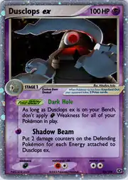 Dusclops ex (Japanese: サマヨールex Samayouru ex) is a Psychic-type Stage 1 Pokémon-ex card. It is part of the EX Emerald expansion.