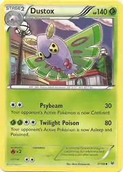 Dustox (Japanese: ドクケイル Dokucale) is a Grass-type Stage 2 Pokémon card. It is part of the Roaring Skies expansion.
