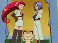 At that moment, an alarm in the Pokémon Center sounds and a villainous group named Team Rocket invade the building. Their Poké Balls break a skylight, and Koffing fills the air with smoke. Team Rocket recites their motto for the first time to Ash and destroys the Center's electrical system in a scheme to steal the Pokémon inside. Nurse Joy, Misty, and Ash retreat to a locked storage room with Pikachu, who is still in its stretcher. The power initially cuts out, though the backup system, Pika-Power, activates. Nurse Joy begins transporting as many Pokémon as she can to Pewter City's Pokémon Center. Suddenly, Koffing breaks through the doors. At Misty's insistence, Ash tries and fails to fend off Ekans and Koffing with a Pidgey, an empty Poké Ball, and Rattata. Misty calls on her Goldeen to help, though without water, it flails helplessly before being recalled.