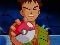 Ash leaves the Pewter Gym and apologizes to Pikachu for being so tough. He turns around after hearing someone calling, and notices Brock running up to him. Surprisingly, Brock gives him the Boulder Badge. Ash doesn't want to accept the Badge, but Brock insists that Ash has earned it through his kindness to Pokémon. Brock continues to explain that rather than becoming a great Pokémon Trainer, his dream is to become a great Pokémon Breeder, but can't do so because of his family duties. He gives Ash the Badge and asks him to fulfill his dream, to which Ash agrees.