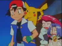 Meanwhile, Team Rocket follows Ash and his friends to Maiden's Peak. They come up with an idea to look around for dropped coins, and while pondering it, James sees the same girl Brock saw before, only by the water. Jessie slaps James to regain his attention. As they leave to look for the coins, James takes a final look at the dock, noticing the disappearance of the girl. During the festival, Ash and his friends meet an old lady. She warns Brock that he should beware a young, beautiful girl who will lead him to a cruel fate. After the old lady insults Misty and Misty decides that they should be somewhere else instead of being insulted and drags off Ash and Brock with her. Meanwhile, Team Rocket puts their plan into action, though they do not seem to find anything. Then, James notices a penny lying on the walkway and goes to retrieve it, but is interrupted by the old lady, which Ash and company met just a moment ago. As in the case of Brock, she mentions the young girl to James. Then an Officer Jenny appears and takes the coin James found. When she suggests that they go down to the station with her to fill out a report, Team Rocket stammers that it is all right, they do not need to go down to the station, and then they flee the scene.