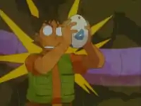 Ash and his friends follow a trail of broken red blue and green eggshells until they reach the shack. They decide to burst in, even though it may be dangerous to do so, and get the Egg back. Ash sends out Pidgeotto, Misty calls on Staryu, and Brock's Geodude lends a hand. They all quickly break through one of shack's windows, surprising Team Rocket. Pidgeotto retrieves the Egg, placing it in Ash's hands. Ash dives to the floor to avoid Arbok. James sends out Weezing, who uses a Poison Gas attack, making Ash and the others cough and gasp for air. Amongst the haze, Meowth Scratches Ash's face, causing him to let go of the Egg in pain and Meowth retrieves it. However, the Egg is tossed around frantically in a series of tackles and catches. Pidgeotto's Gust clears the air, and Meowth suddenly slips, sending the Egg into the air. Ash lunges for the Egg, though he fails to catch it. Fortunately, Pikachu ends up with the Egg and gives it back to Ash. At that moment, the Egg begins to glow and hatch.