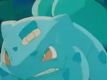 - Right before Team Rocket is hit with Vine Whip, Bulbasaur's ear is the same shade of green as its bulb.