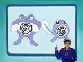 • In the English dub, the instructor shows an image of a Poliwrath and Poliwag but calls them Poliwhirl and Poliwag.
