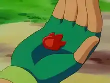 - The "riddle" Blaine gave (and Misty's response) differed between versions: