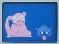 Westwood V tries to flee with his Slowpoke, but after tripping, Team Rocket catches up and sends out Shellder. To everyone's surprise, Slowpoke, regarded as the Dopey Pokémon, runs around in an attempt to flee from Shellder. Misty decides to intervene with the seaside location perfect for her Water-type Pokémon, but Psyduck emerges. Psyduck turns around and Shellder clamps onto its tail instead. After a delayed pain reaction, Psyduck throws Shellder off, sending the Pokémon flying. Weezing attempts to knock Psyduck out, but only bounces on its head. Infuriated, Jessie throws Shellder again, but it clamps onto Psyduck's head this time, giving it a major headache. Psyduck, now much more powerful because of its headache, uses Disable to stop everyone and its Confusion sends Team Rocket flying. It suddenly loses concentration, however, both Team Rocket and Shellder land close by. As Slowpoke walks towards Psyduck to thank it, it trips and Shellder clamps onto its tail, evolving it. Team Rocket runs back to grab Slowbro, but Westwood V orders Slowbro to attack them with Mega Punch. Although Slowbro temporarily forgets the attack due to Amnesia, it quickly regains it and sends Team Rocket blasting off once again.