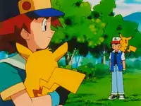 The next morning, Ash reminds him of their promise, before Ritchie sets off. After Ash remembers the highlights of the League games, he sees his friends, mother, and Professor Oak. Smiling, he asks Pikachu if he is ready to go back to Pallet Town. After Pikachu affirms it, he runs over to them.