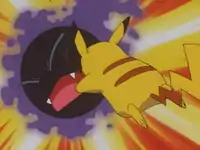 With Foresight keeping Gastly in view, Ash chooses Pikachu to replace Noctowl. Pikachu begins by using Quick Attack, which knocks Gastly backwards. Gastly lies on the ground for a moment before recovering itself. Pikachu then uses Thunderbolt, but Gastly dodges and counters with Night Shade. Ash rushes to Pikachu’s side, but his friend is declared knocked out and unable to battle any further. After thanking Pikachu for his hard work, Ash chooses Cyndaquil as his next choice.