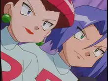 - After Jessie and James send out their Pokémon, a part of the R on James's shirt is overlapping Jessie's sleeve, when it should be behind it.