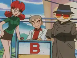 - The plot of this episode may have been inspired by the Imposter Professor Oak card from the Pokémon Trading Card Game.