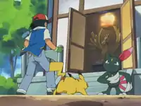 Ash and crew approach the Secret Flame, just as Team Rocket get approached by the Sneasel, and its Machop and Machoke friends, for invading their space. Sneasel's Faint Attack sweeps Team Rocket into a frenzy and blast off before long. Ash makes his way to the shrine while Misty and Harrison deal with Machop and Machoke, but Sneasel shows up toss top Ash before he can take the flame. Totodile tries to stop the Sneasel, but gets taken out of the match before long by Sneasel's Shadow Ball. Ash and Totodile crash into a tree, but Ash refuses to give up.