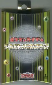 The unlimited World Champions Pack is one of the rarest Japanese booster packs. It was created as a reprint and was only available for sale during Spring Battle Road 2008. Information about the release of the unlimited World Champions Pack is extremely hard to find. An archived page of the official Pokémon TCG website mentions the end of a limited sale on May 16, 2008[2] which would coincide with Spring Battle Road 2008. Some Japanese websites mention a sale of World Champions Packs during Spring Battle Road 2008[3][4]. It is believed that the unlimited World Champions Packs were only available for sale for the competitors. Unfortunately Battle Road Spring 2008 was cancelled due to bomb threats so three out of the five event venues were cancelled [5]. This explains the rarity of the unlimited World Champions Pack, making it one of the rarest Japanese sets. It is only overshadowed by the unlimited edition Japanese cards of the Base Expansion Pack set, of which some cards were given through lotteries. Unlimited World Champions Pack cards are thus extremely rare which make some of them, like the Gold Stars; very expensive.