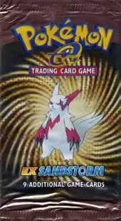 Pokémon-e TCG: EX Sandstorm (Japanese: 砂漠のきせき Miracle of the Desert) is the name given to the second main expansion of cards from the EX Series of the Pokémon Trading Card Game (the ADV Era in Japan). The set continues to feature Generation III Pokémon and Pokémon-ex in the card game.