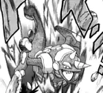 Nidoking's outline flashes yellow and he slams his fist into the ground, creating glowing gold cracks that travel at the opponent and go under it, hurting it. | ||
