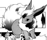 | Pyro credit evolving his Flareon with win his first Pokémon battle. Its only appearance was in The Battling Eevee Brothers, where it first appeared at a Stone Town evolution party alongside the other owners and Jolteon and Vaporeon. Pyro then boasted how powerful Flareon was, getting into an argument with the other brothers. Team Rocket appeared, and stole it and all the other Pokémon including the Evolution stones.