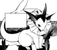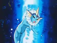 Later they found Team Rocket from the ink trail left by Misty's Horsea, and were able to free them all except for Eevee. By using its Acid Armor it blended into its watery surrounds and hit James's Weezing, though it later defeated by a Sludge attack. Mikey and his Eevee went on to send Team Rocket blasting off. Later, Rainer and Vaporeon posed for a group photo to commemorate Mikey's decision to become an Eevee Trainer. Vaporeon's known moves are Acid Armor and Tackle*. | ||