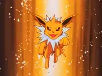 Later they found Team Rocket from the ink trail left by Misty's Horsea, and were able to free them all except for Eevee. Jolteon fought Jessie's Arbok with Pin Missile, but was knocked out by Arbok's own Pin Missile. Mikey and his Eevee went on to send Team Rocket blasting off. Later, Rainer and Vaporeon posed for a group photo to commemorate Mikey's decision to become an Eevee Trainer. Jolteon's only known move is Pin Missile. | ||