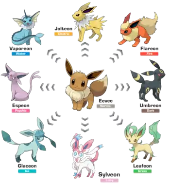 - The Eeveelutions were featured along with Eevee in the Eevee Essences Collection.