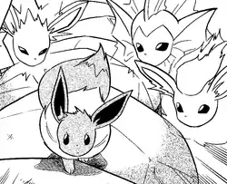 Vaporeon, Jolteon, and Flareon were seen in the Pocket Monsters manga.