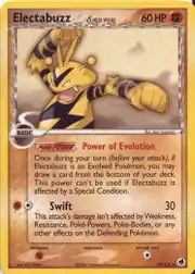 Electabuzz δ (Japanese: エレブー δ Eleboo δ) is a Fighting-type Basic Pokémon card. It is part of the EX Dragon Frontiers expansion.