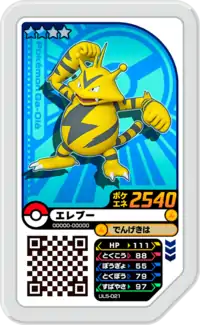Electabuzz (Japanese: エレブー Eleboo) is a Grade 2 Pokémon Ga-Olé disk. It is part of the fifth Ultra Legend set.