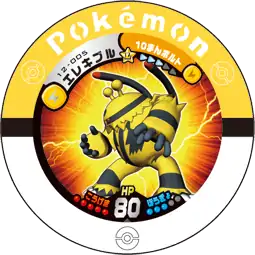 Electivire (Japanese: エレキブル Elekible) is a Pokémon Battrio puck. It is part of the Sky-Tearing Rayquaza expansion.