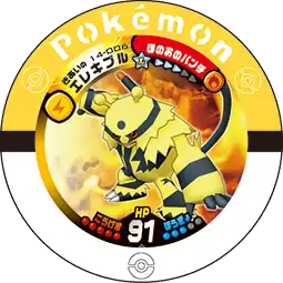 Electivire (Japanese: エレキブル Elekible) is a Pokémon Battrio puck. It is part of the Mewtwo Awakening expansion.