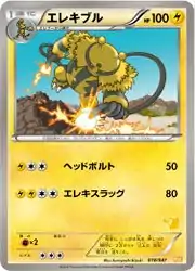 Electivire (Japanese: エレキブル Elekible) is a Lightning-type Stage 1 Pokémon card. It is part of the Everyone's Exciting Battle collection.