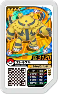 Electivire (Japanese: エレキブル Elekible) is a Grade 3 Pokémon Ga-Olé disk. It is part of the fifth Ultra Legend set.