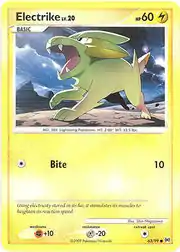 Bite is a move in the Pokémon games that Electrike can learn. This card's Pokédex entry comes from Pokémon Diamond, Pearl, and Platinum.
