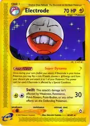 Electrode (Japanese: サンダー Marumine) is a Lightning-type Stage 1 Pokémon card. It is part of the Aquapolis expansion.