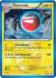 Electrode (Japanese: マルマイン Marumine) is a Lightning-type Stage 1 Pokémon card. It is one of the BW Black Star Promos.